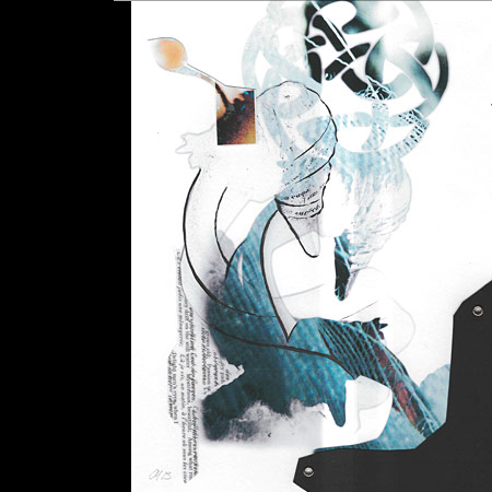 / collage and drawing based on the sculpture "the swan" /