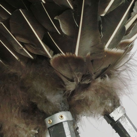 • wood, plaster, sea bird feathers, broken glass, laquer, pigment