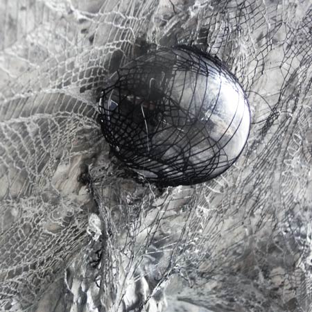 wood, plaster, aluminium foil, fish net stockings, laquer, pigment