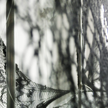• wood, plaster, aluminium foil, fish net stockings, laquer, pigment